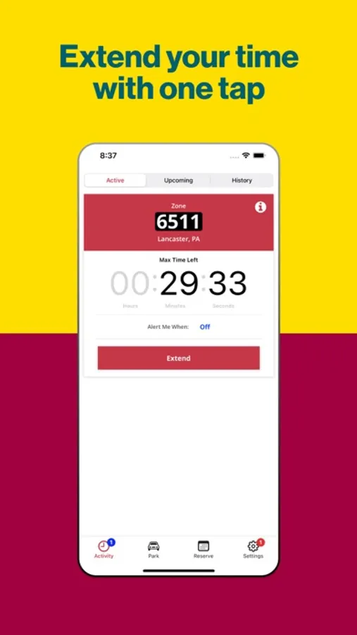 • Streets, Lots, and Garages: Enter the zone number on the posted signs in your area. Select the amount of time you want to park, and start your session. Extend time in the app if you are running late.
