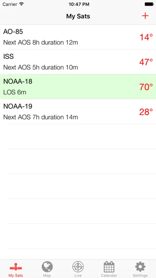 It displays current and next passes for any satellites, it also provides beacons frequencies to listen to.