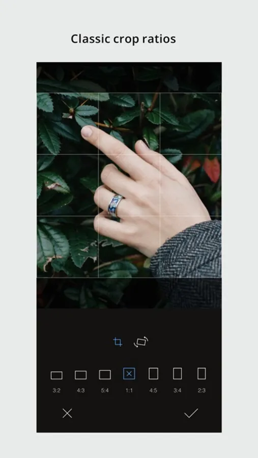 Use RNI image adjustment tools to make sure your images perfectly meet your creative vision. You can crop and rotate, alter the brightness, contrast, and colour, enhance shadows and highlights, add vignette and real film grain, and much more.