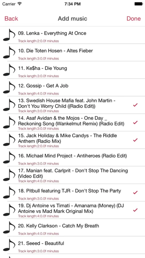 Az iTunes programmal szinkronizált zenék kiválasztása. Egy vagy több zene kiválasztása a lejátszási listához.