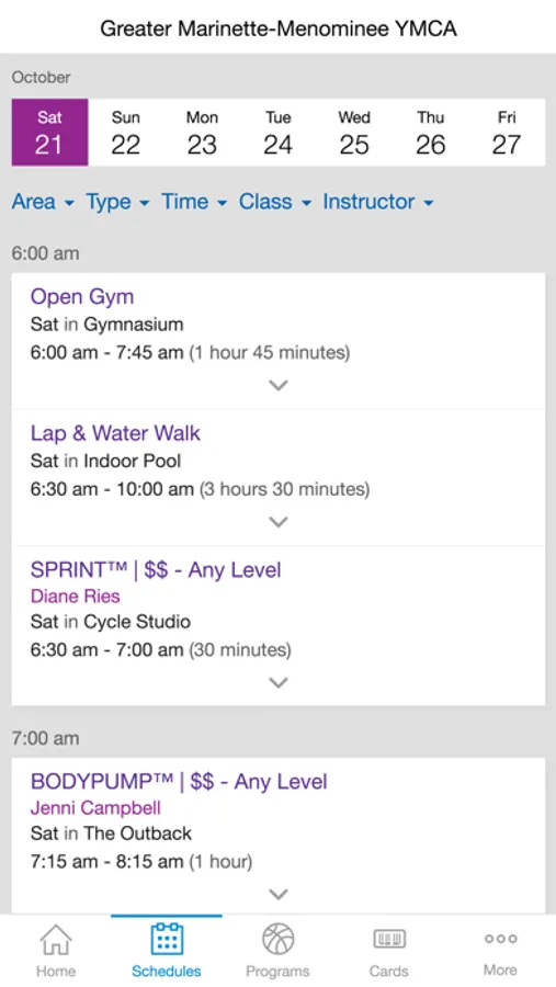 • Easily view schedules for each day and filter for the types of classes that you like.