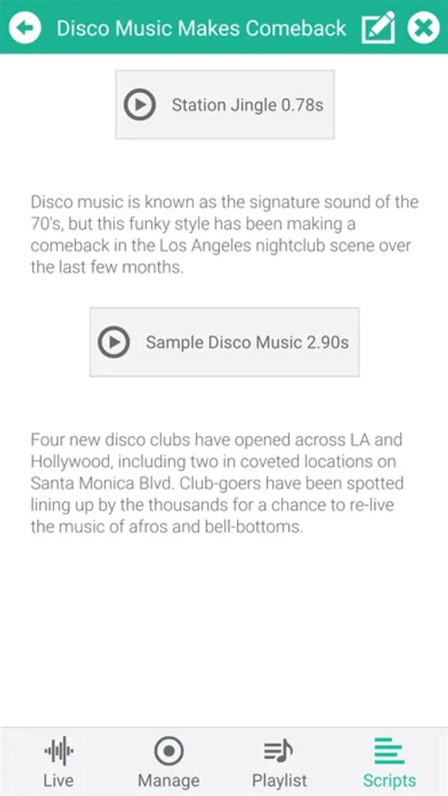- Audio played from Scripts or Playlist will play out on the Receiver simultaneously with audio from microphone