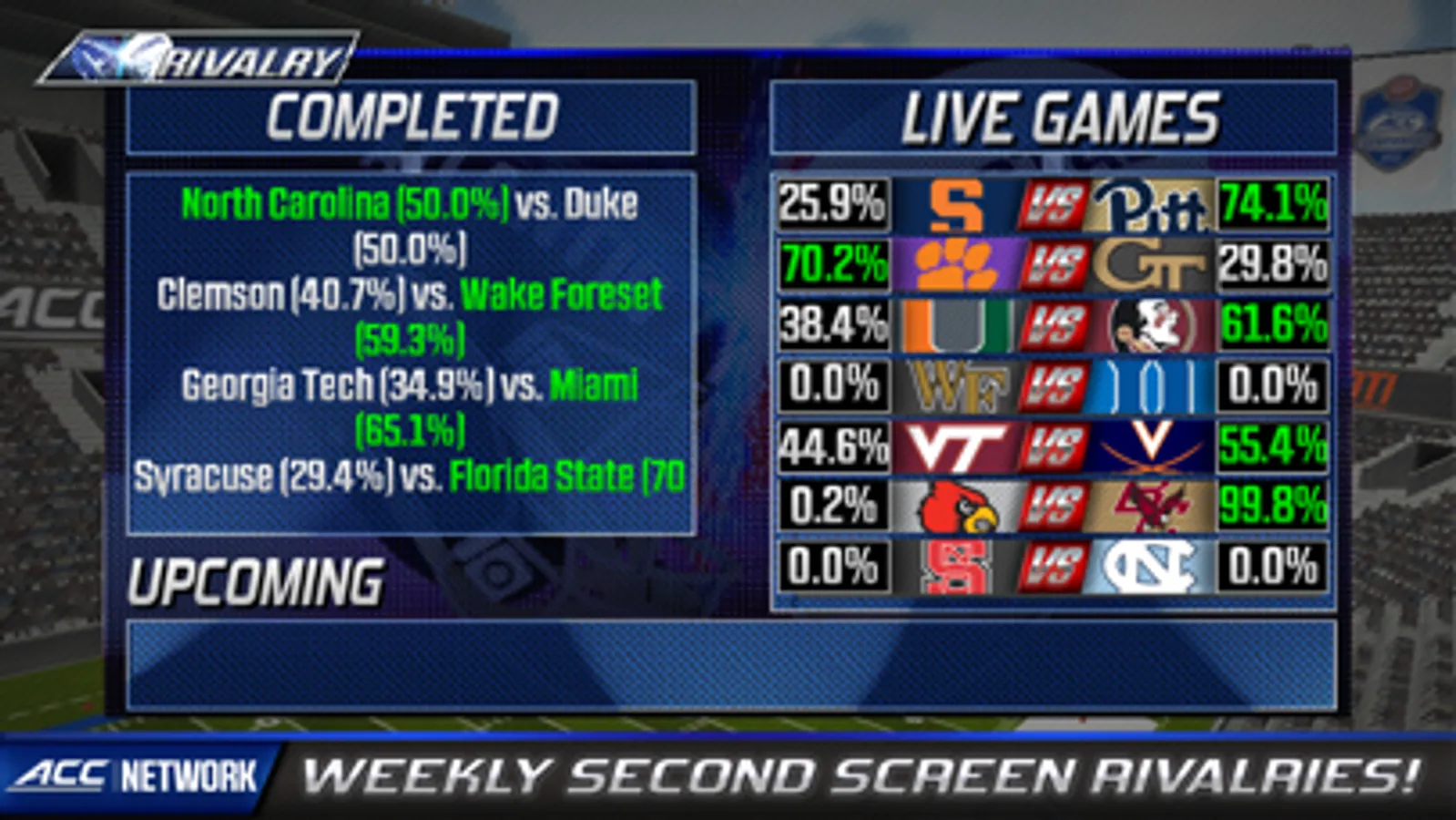 Represent your favorite ACC team as it takes on conference rivals. Rack up wins for your team against their rival, the school with the most wins claims bragging rights.