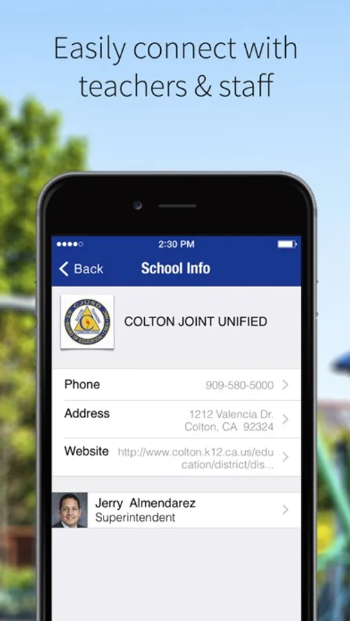 The official Colton Joint USD app gives you a personalized window into what is happening at the district and schools. Get the news and information that you care about and get involved.
