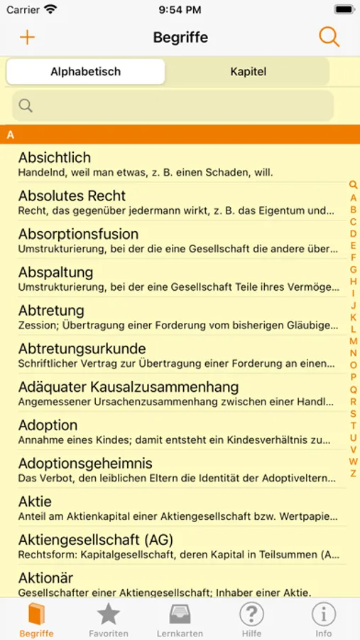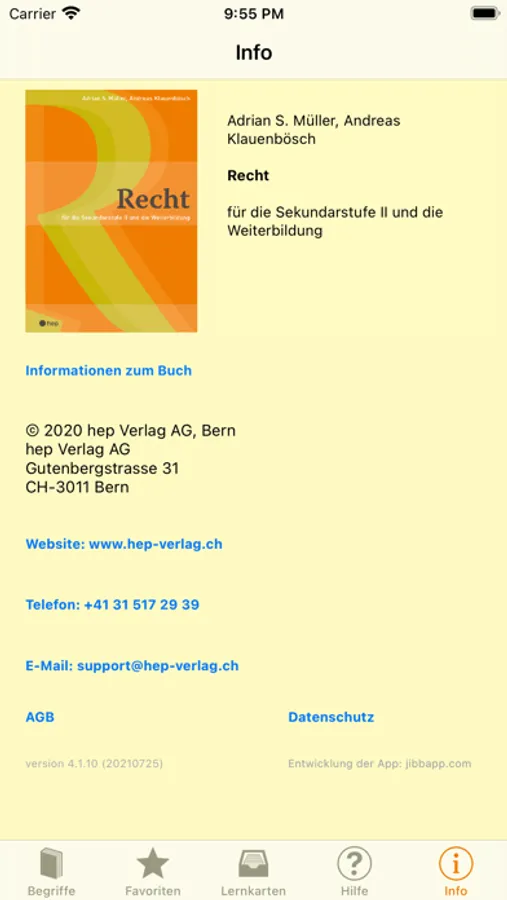 Diese App basiert auf dem Lehrmittel «Recht» von Adrian S. Müller und Andreas Klauenbösch aus dem hep Verlag. Sie enthält alle Begriffsdefinitionen des Glossars aus dem Buch – alphabetisch und nach Kapitel geordnet.