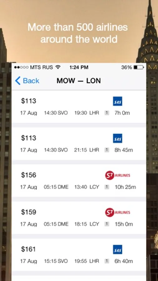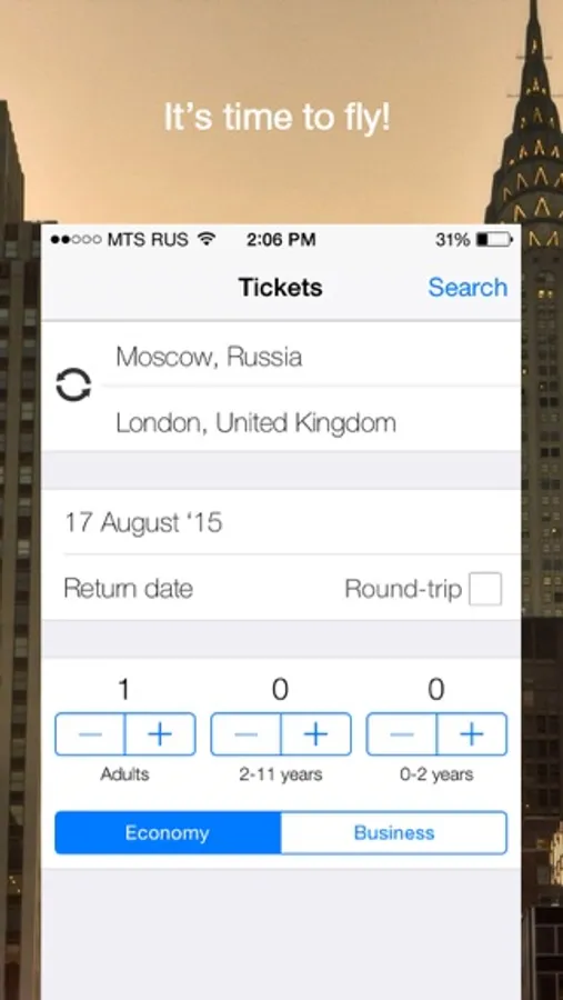 - Lightning-fast search of the best bargains with the possibility to order tickets directly through the application.