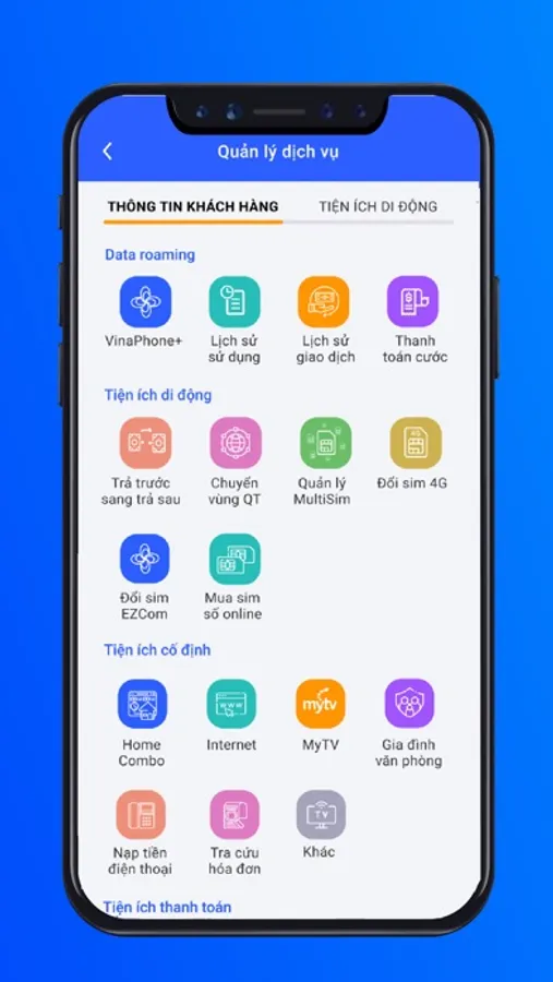 - Đăng ký dịch vụ internet, truyền hình, đăng ký gói cước di động… ngay trên ứng dụng.