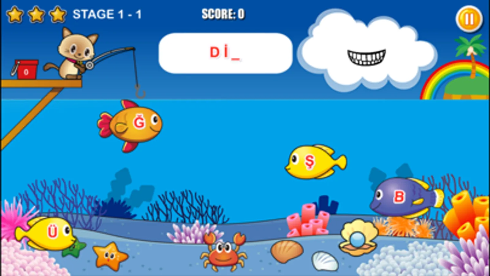 Touch and tap fish to catch them. Cat eats only fish with correct answers.