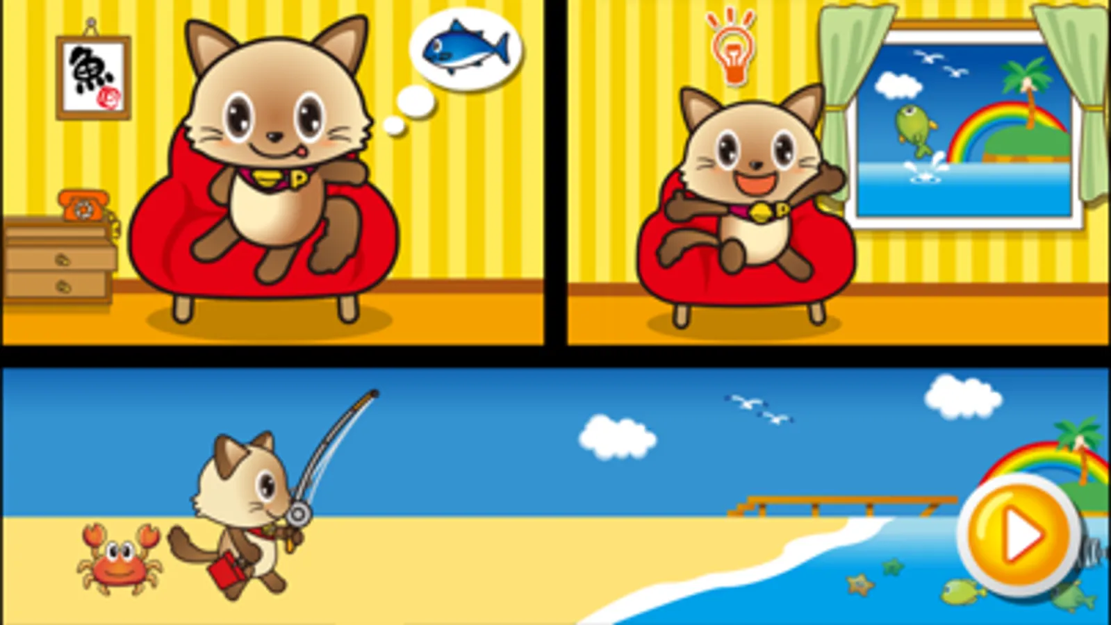 Your cat is hungry, want to eat fish and fishing at seaside.