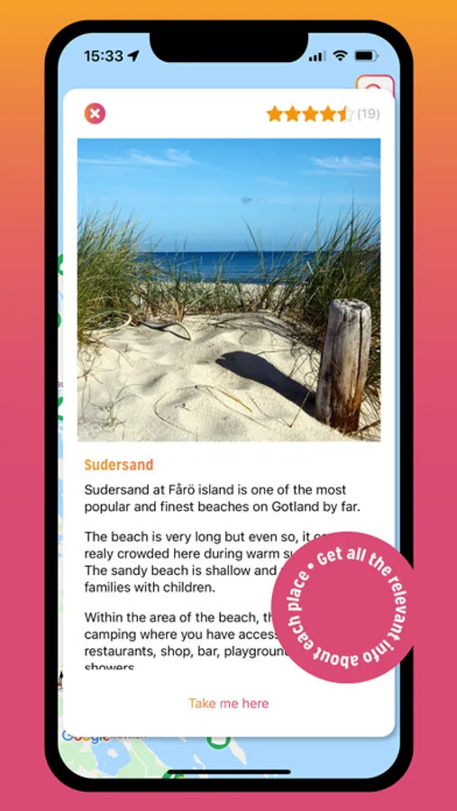 Get tips on Sights, Historic Sites, Beaches & Cafes / Restaurants. Or where the nearest WC, Wi-Fi or Playground are located.