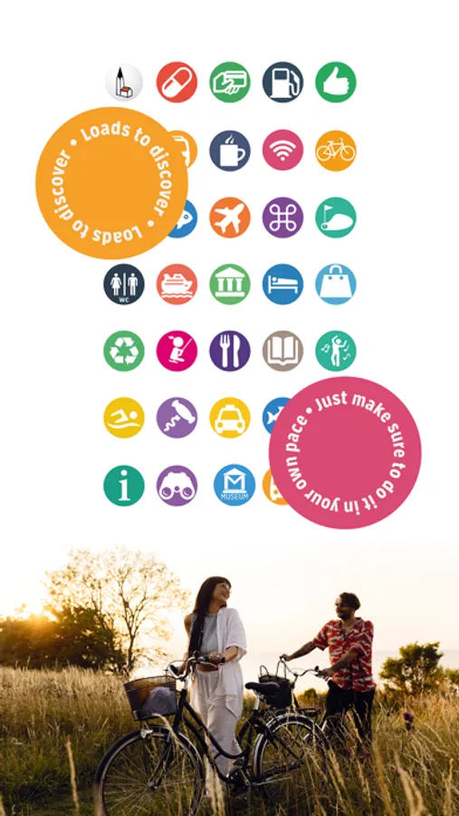 Hold your mobile phone in your hand or on the handlebars of your rented bike, and follow the recommended route. If you are near a point of interest, it will appear on the screen.