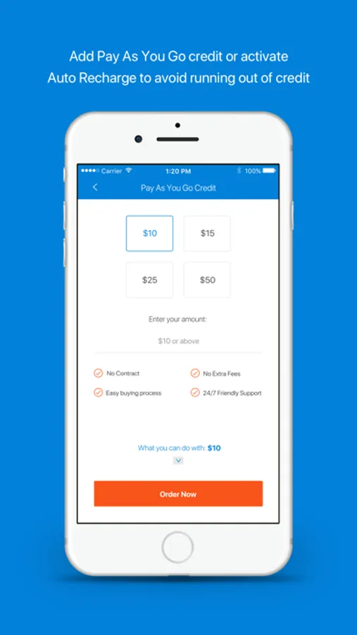 * Recharge safe and easy or set up Auto Recharge to avoid running out of credit