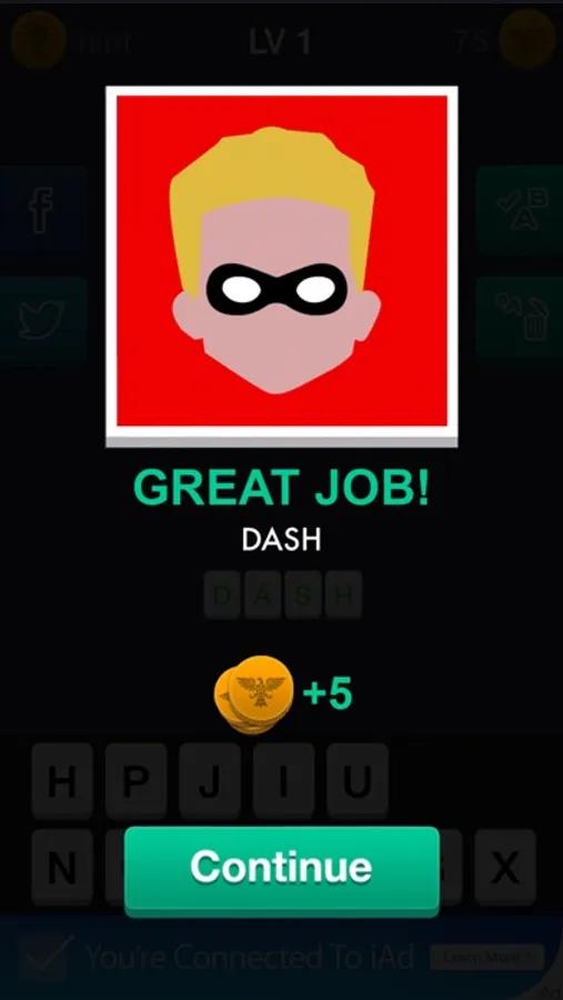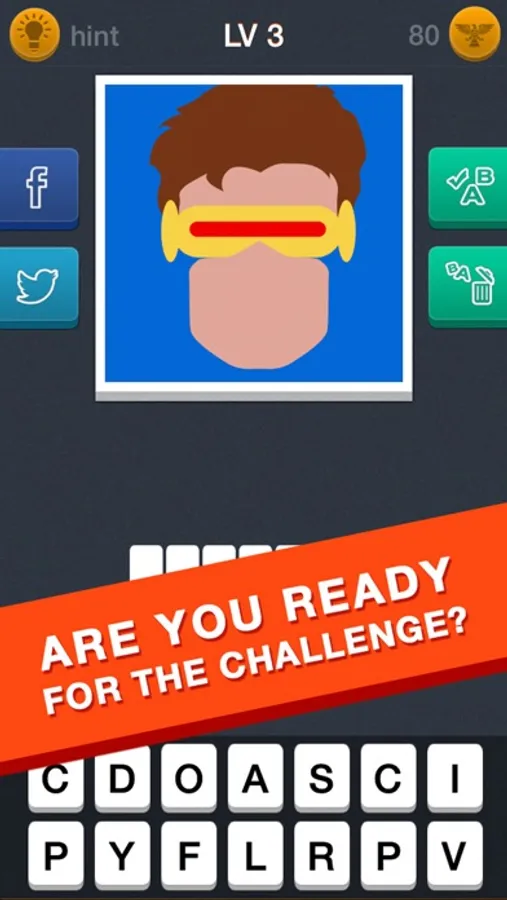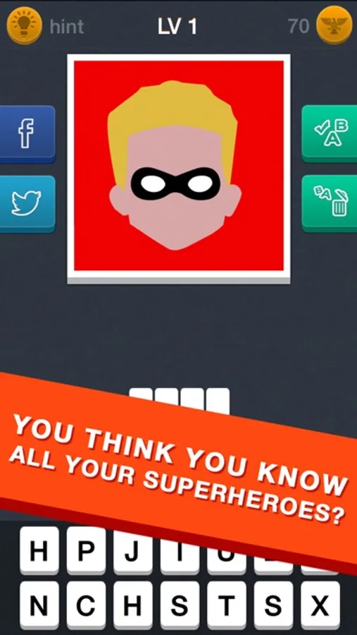 In Amazing Superheroes, players are challenged to solve who they think the image looks like. Earn points by correctly guessing the Superhero. Ask for help from friends on Facebook and Twitter. Amazing Superheroes, is simple and addictive.