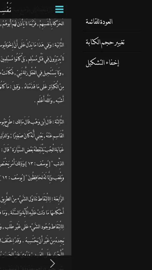 كما يتيح التطبيق التحكم في حجم الخط بما يناسب القارء