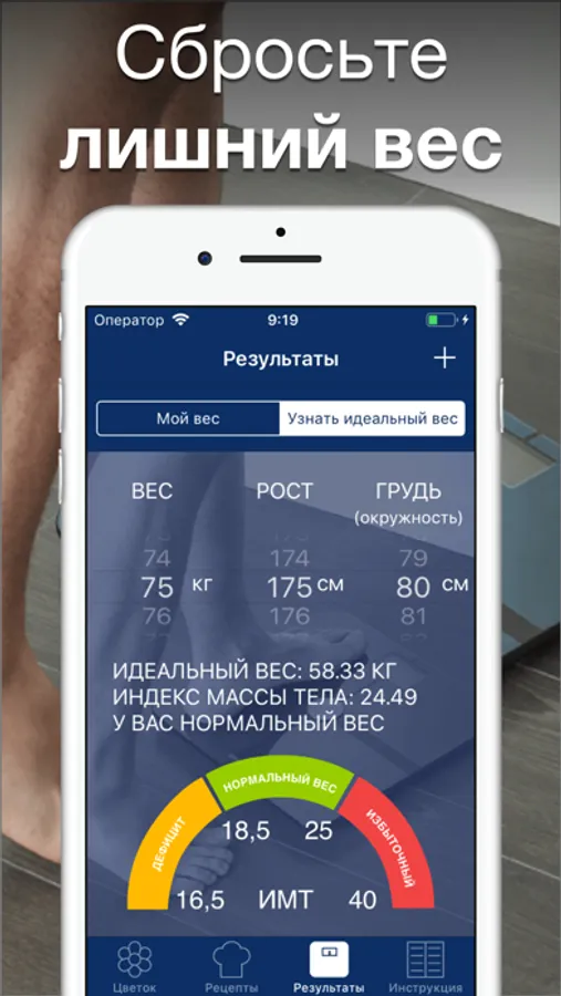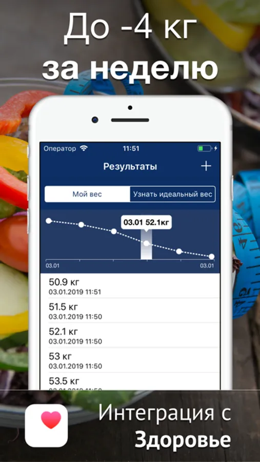 • Сохраняйте свои результаты и следите за изменениями веса каждый день
