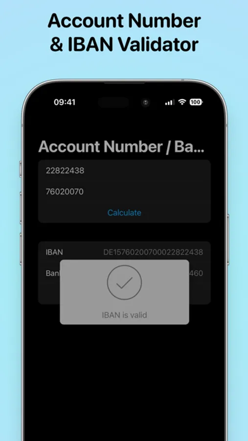 The IBAN Calculator by MoneyCoach features: