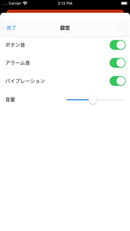 また、設定画面でボタン音・アラーム音・バイブレーション・音量を設定できます。