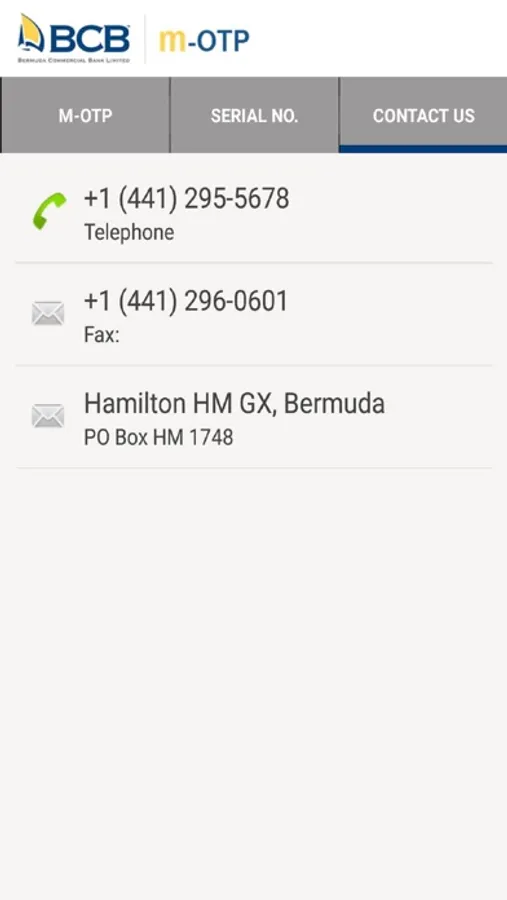 “An easy to use One-Time Passcode to help you conduct secure online banking transactions with Bermuda Commercial Bank"