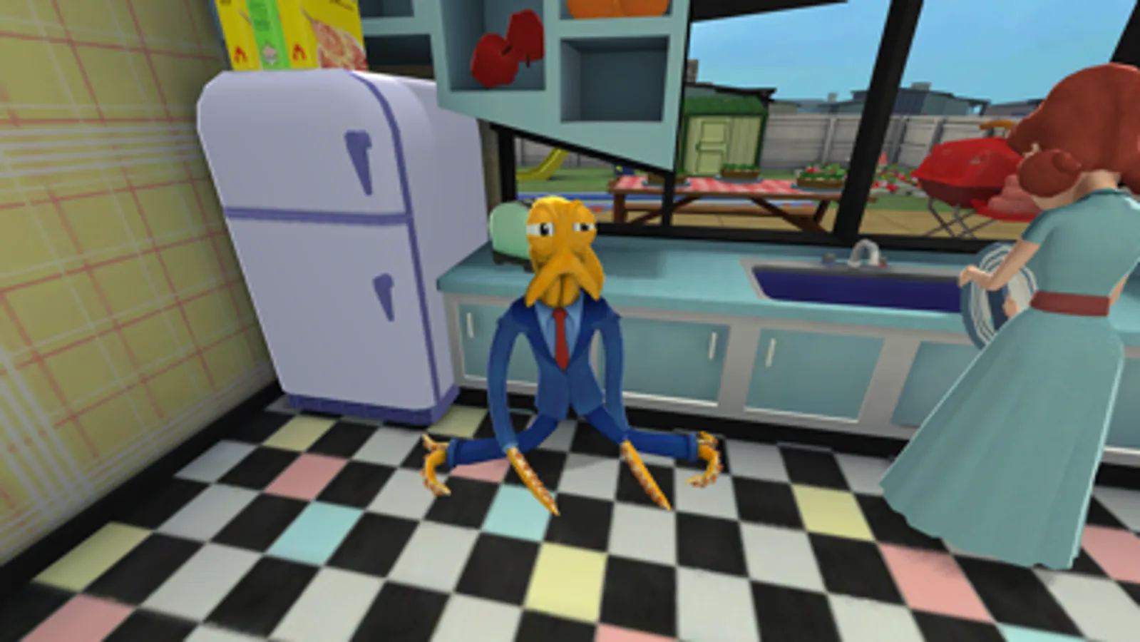 Octodad: Dadliest Catch is a game about destruction, deception, and fatherhood. The player controls Octodad, a dapper octopus masquerading as a human, as he goes about his life. Octodad's existence is a constant struggle, as he must master mundane tasks with his unwieldy boneless tentacles while simultaneously keeping his cephalopodan nature a secret from his human family.