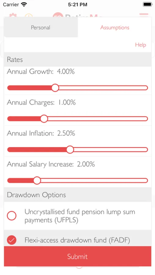 RetireMe allows you to quickly and easily model your drawdown income based upon either a Flexi Access Drawdown Fund or Uncrystallised Funds Pension Lump Sum basis.