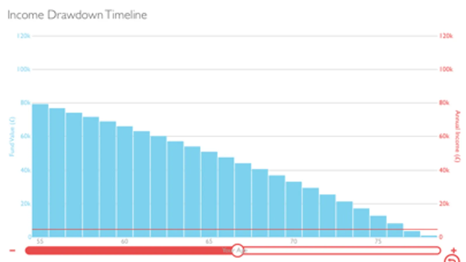 - Simple, easy to understand timeline showing the value of your projected pension fund over your selected drawdown period.