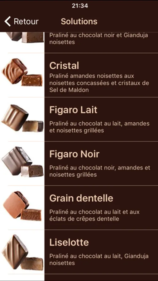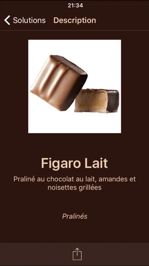 UNIQUE AU MONDE: par simple scan d'un chocolat d'un des chocolatiers reconnus, l'app vous identifie automatiquement le nom du chocolat (disponible pour un nombre limité de chocolatiers)