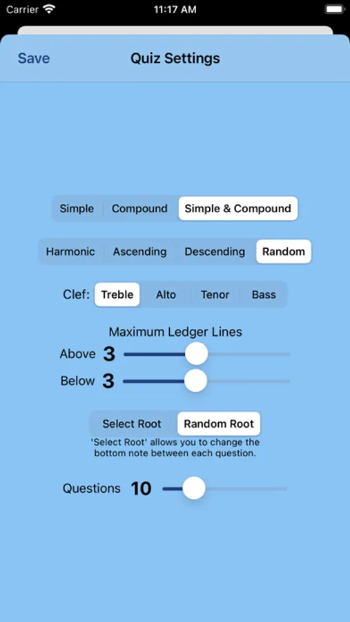 • Three modes: Audio and Visual, Audio Only (Ear Training), and Visual Only (Clef Notation Training).