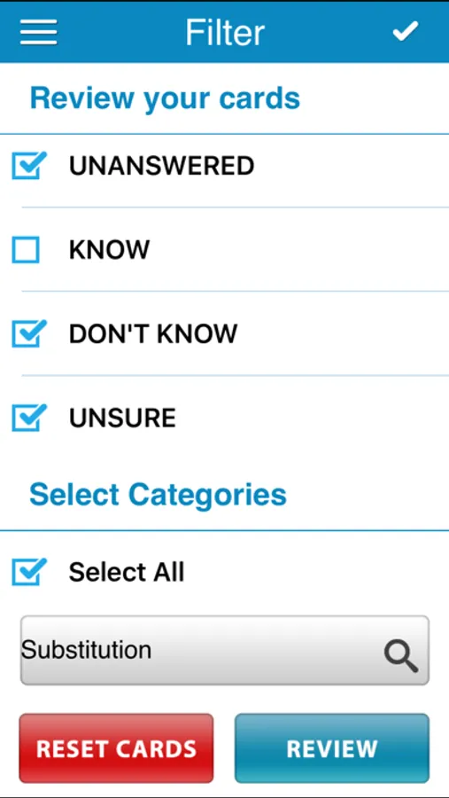 + Track the cards you know by marking them and only study the ones you know or don't know