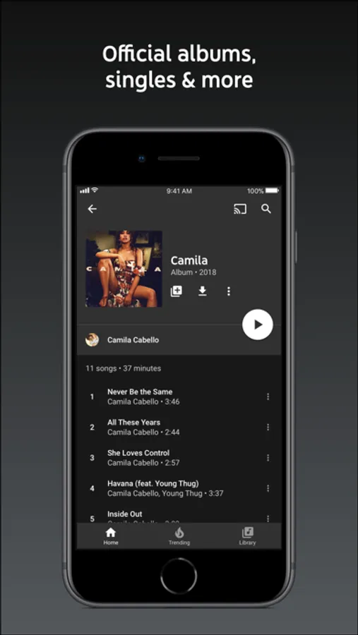● Switch seamlessly between song audio and music videos, only with YouTube Music