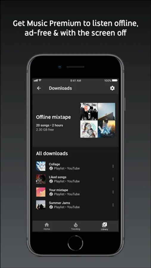 ● Neatly organized Library to see all of your liked and added songs, playlists you created, and artists you subscribed to