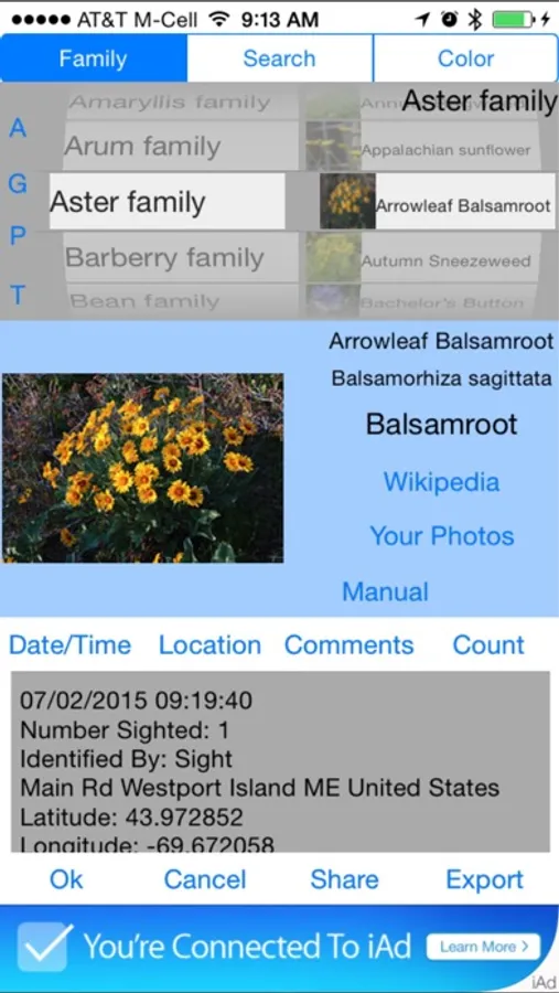 With the Wildflower Journal you can take and attach your own photos to your sighting; add comments; and tap the “count” button and scroll to quickly enter the number you have sighted.