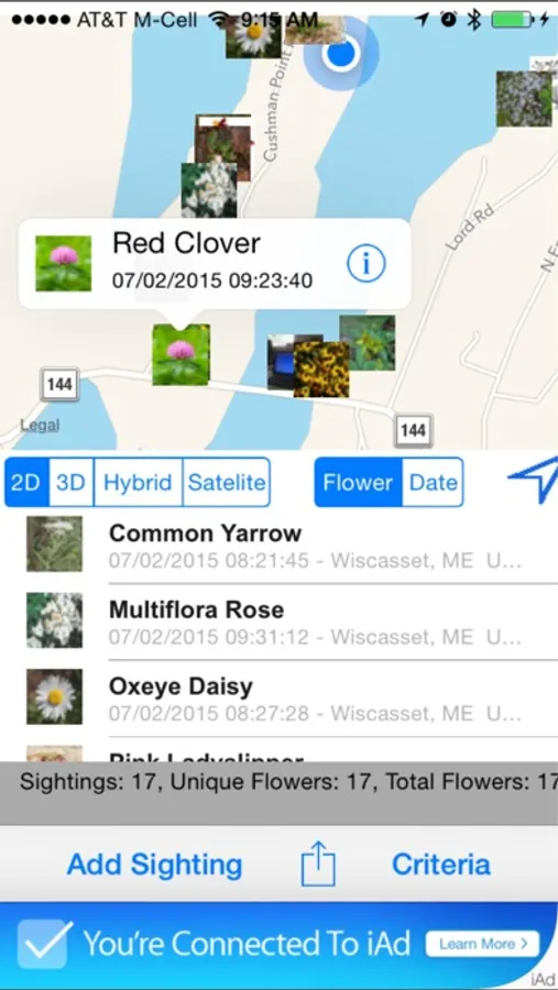 You spotted a wildflower? Click “add sighting” and the App. immediately records the time, date and the exact location using GPS coordinates (including city, state and nation). Your flower will be displayed with a photo icon on a map and in a sighting table, sortable by date or common name. Start entering the name of the flower in the “search” bar and the app will pull up a list of wildflowers.