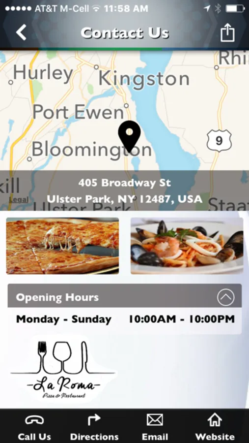 La Roma Pizza & Restaurant is located in Ulster Park, part of New York's beautiful Hudson Valley. Use our app to get instant information on our daily specials, our extensive menu and our catering services.