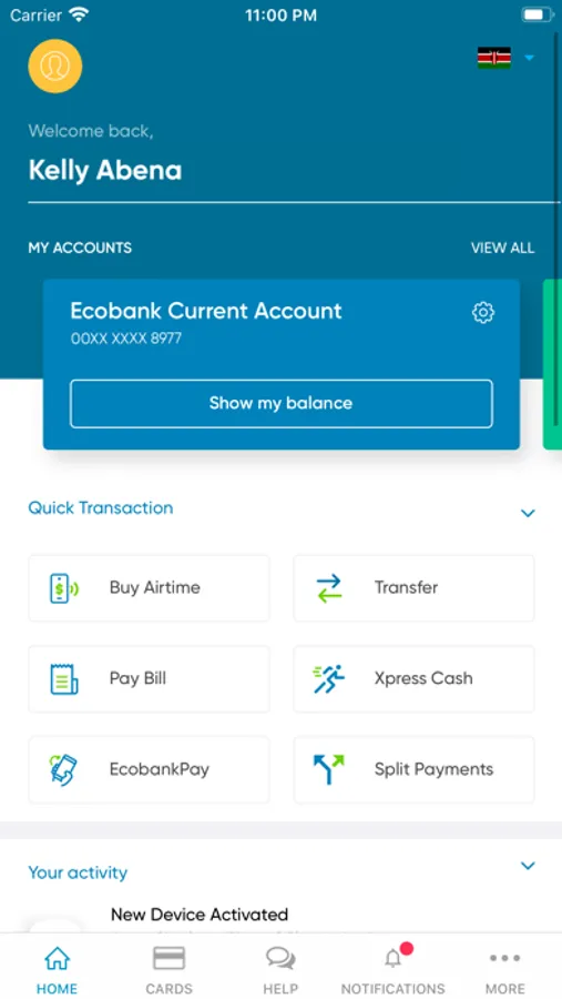 Features on the Ecobank Mobile App include: