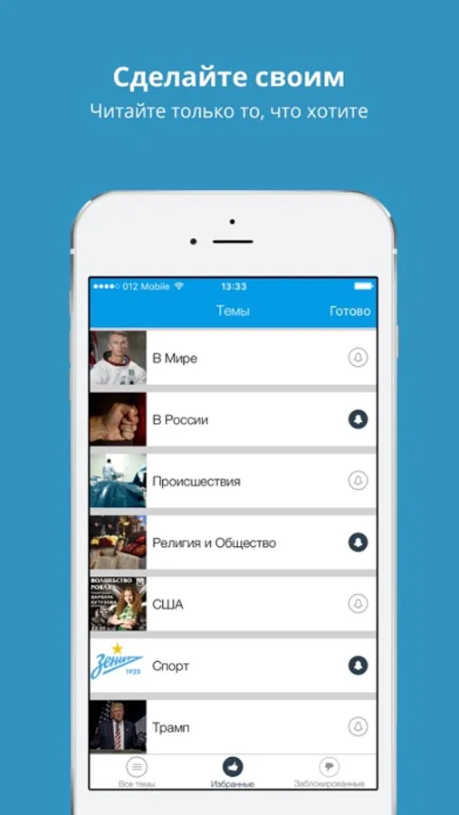 - Ваша собственная лента новостей - выбирайте темы, за которыми вы хотите следить, темы, которые вы хотите заблокировать, и темы, по которым вы хотите получать уведомления! Не тратьте время на новости, которые вам неинтересны!
