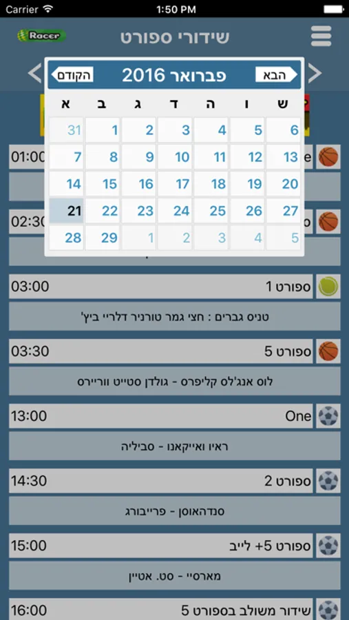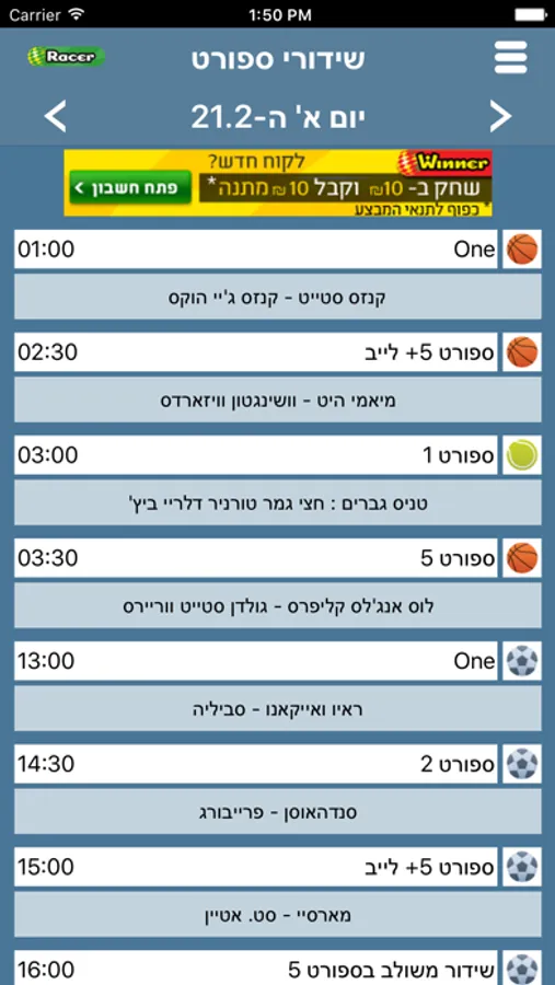 לוח שידורי ספורט המקיף והטוב בישראל.