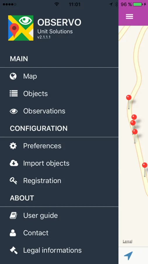 Observo is an App allowing you to create observations and events (like natural phenomenon, damage assessment, surveillance, inventory, etc.). Your observations can be made freely or can be based on existing objects. All records are localized on a map.