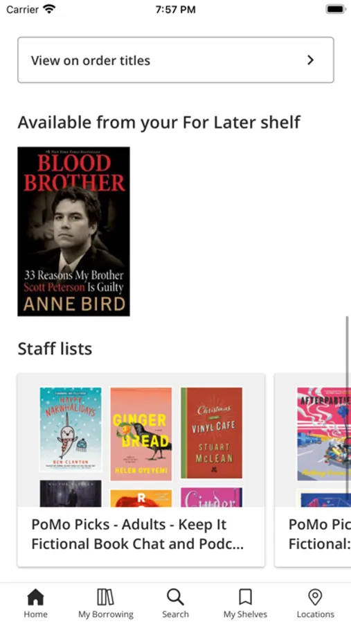 • Scan a book barcode with your camera to see if the Library owns a copy • Browse new arrivals and on-order titles