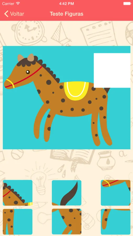 Já Vi esta Figura?: Apresenta 6 imagens de animais diferentes e em seguida mostra uma sequência de 20 animais, onde a criança deve identificar se aquele animal estava ou não dentre o conjunto de 6 imagens. Com este jogo pode-se verificar aspectos como memória visual e percepção.