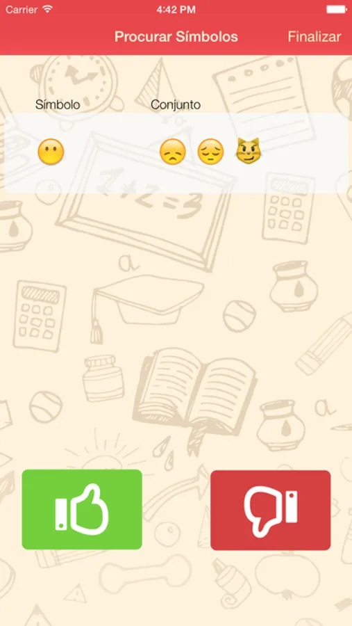 Procurar Símbolos: Apresenta um símbolo seguido por uma sequência de 3 símbolos, onde a criança deve identificar se o símbolo apresentado está contido ou não dentro da sequência. Com este jogo pode-se verificar aspectos como concentração, foco e atenção do jogador.