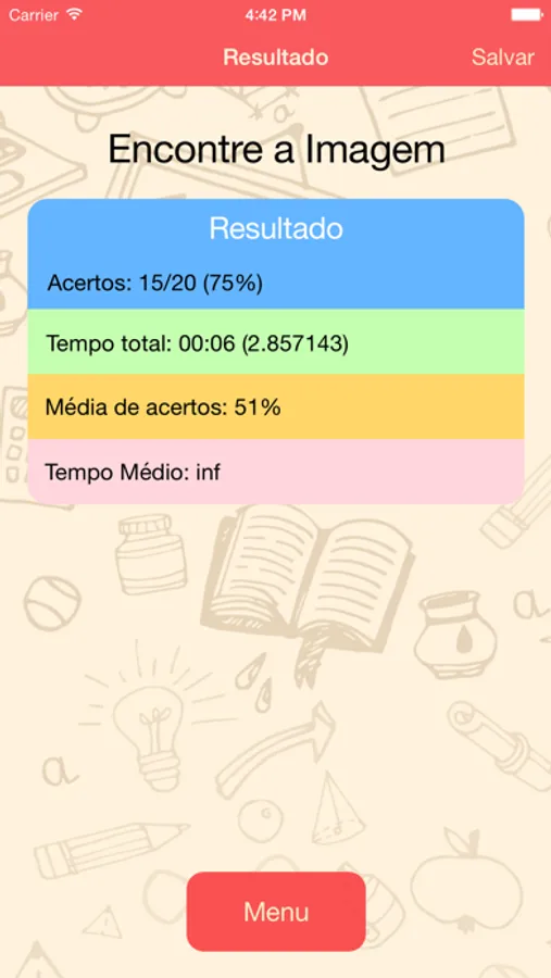 Após a realização dos testes o aplicativo apresenta o desempenho do jogador comparando com uma média geral de todas as partidas do mesmo jogo. Também permite salvar no dispositivo as pontuações dos jogadores.