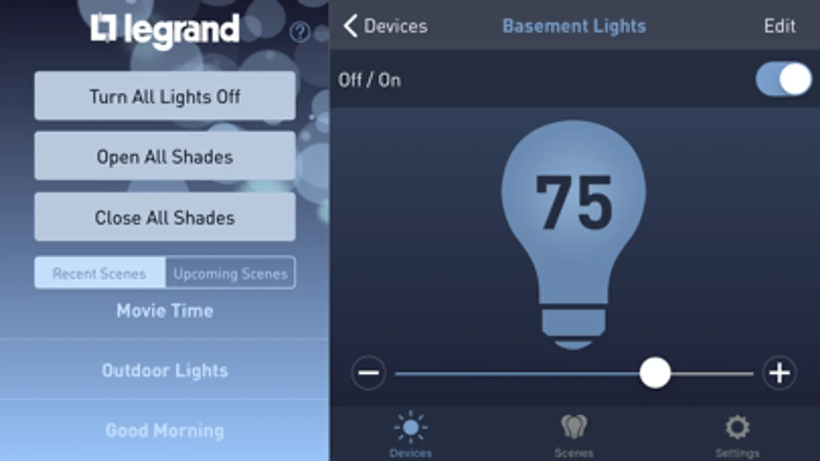 The Lighting Control app offers simple and convenient control of your radiant® RF Lighting Control and adorne® Wi-Fi Ready devices.