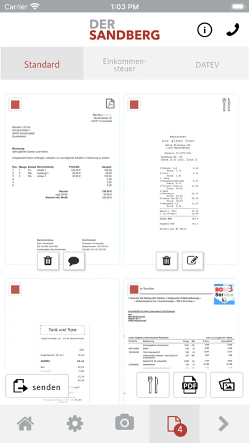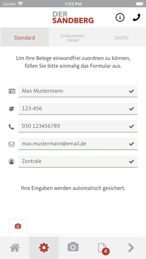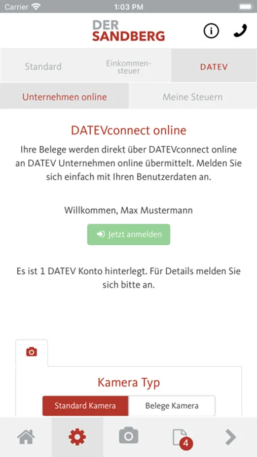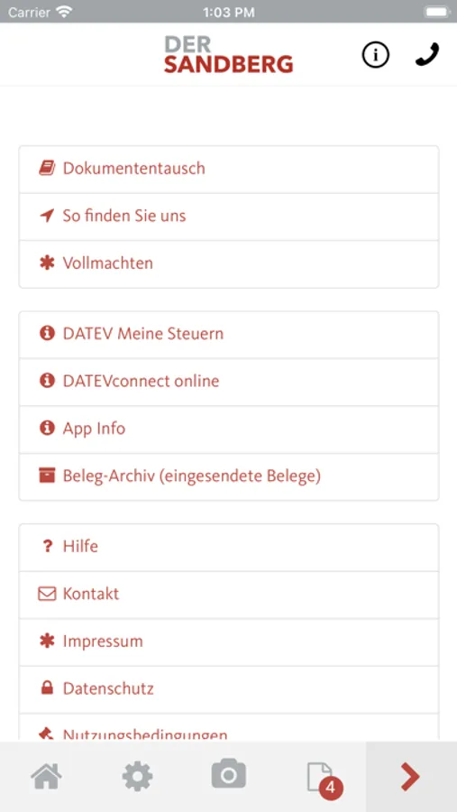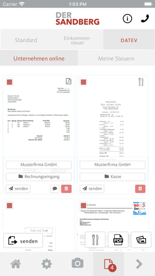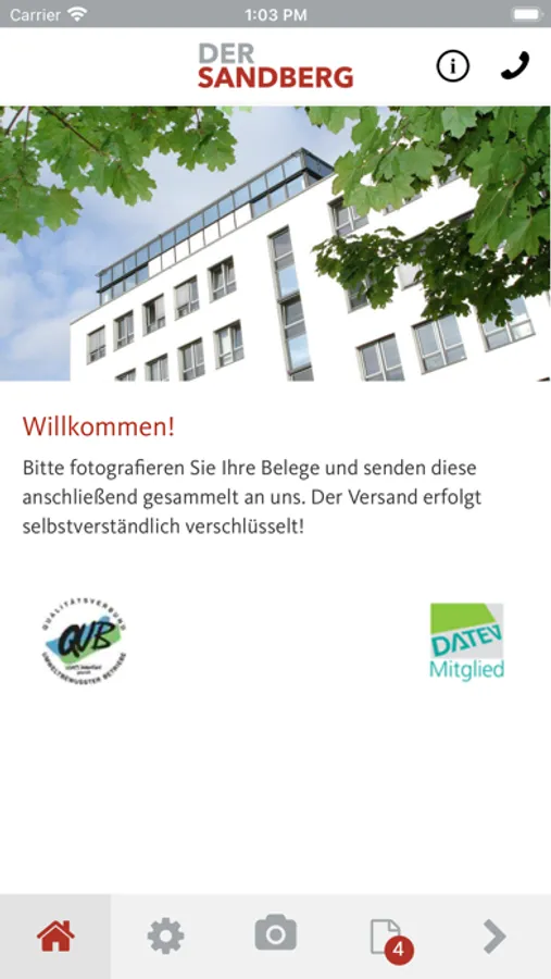 Mithilfe dieser App können Belege, Dokumente und andere Schriftstücke schnell, sicher und komfortabel an Der Sandberg Steuerberater gesendet werden.