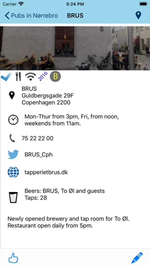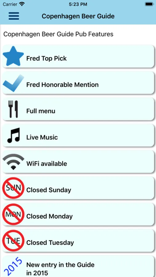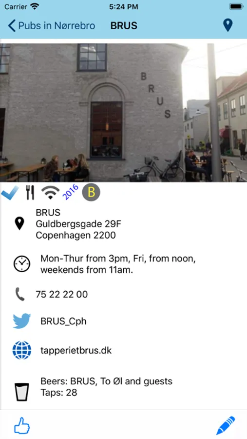 Each entry contains a review, photograph, nearest bus line, contact info, website and twitter handle for each pub. Check the pub's twitter feed for news without leaving the app. A map will show the location of the pub as well as nearby listed pubs.