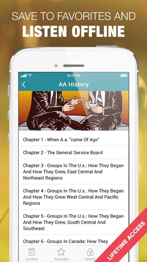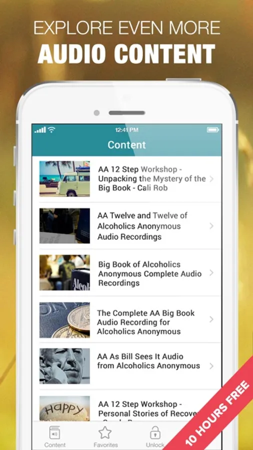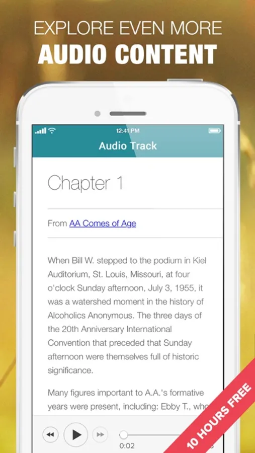 Listen to the history of how Alcoholics Anonymous got started and spread to become one of the greatest movements in history. From the original Big Book stories to Bill and Bob's stories of recovery, this app brings you hours of amazing 12 step audio content to keep you on the straight and narrow. Speaker tapes, member personal stories. Workshops. It's all here. Including AA, NA, Al-Anon and more twelve step recovery programs.