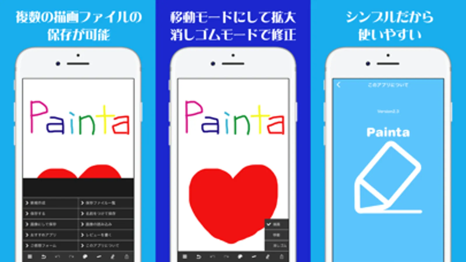「Painta」は、無料の保存機能付きペイント・お絵かきアプリです。