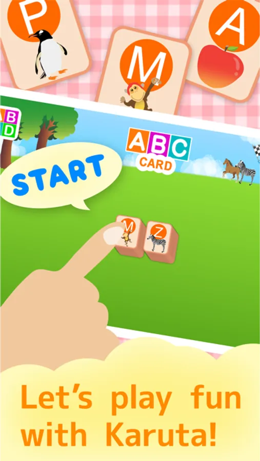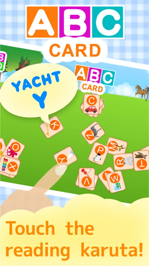 Listen to the alphabets and words in English. Then find and touch the card that you’ve listened to.