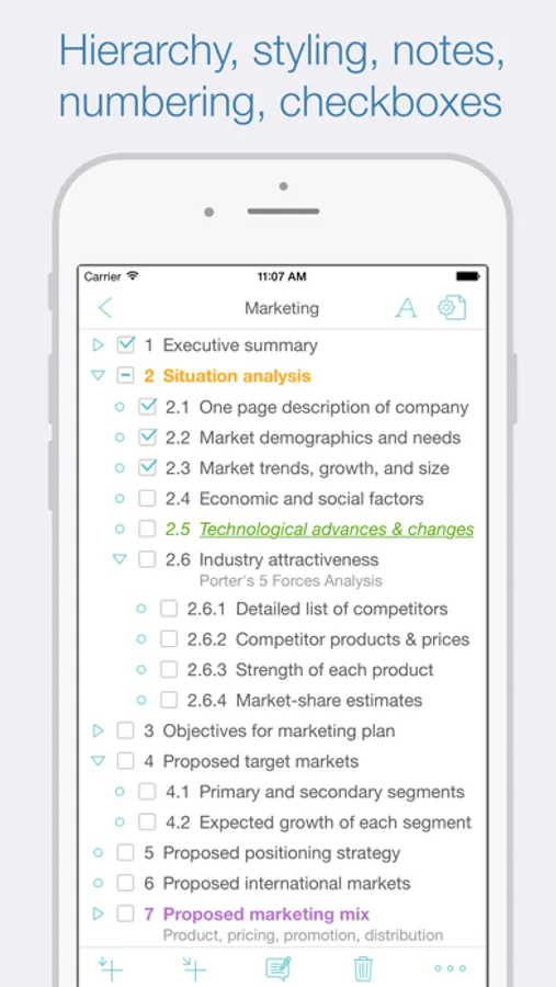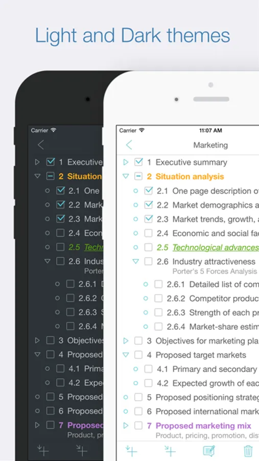 This tool is not yet another notebook app or sticky notes organizer for mobile devices. Not even a little! Thanks to tight integration with Evernote and iCloud, extensive import and export functionality, rich-text editor, and a truly intuitive user interface with gestures, the solution will become your reliable assistant both at work and at home. You can seamlessly synchronize your records with Evernote and iCloud, share your data in different ways (PDF, OPML, plain text, emails, and even paper copies), and format your notes in the built-in powerful editor. All your thoughts, ideas, ongoing tasks, and even arbitrary memos will be kept safe and available close at hand. You can simply focus on the things that really matter – and the Cloud Outliner will cover everything else.