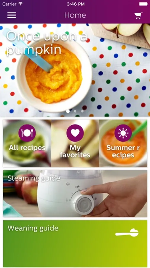 The Easy Weaning app from Philips Avent helps you preparing effortless and nutritious baby meals with Philips Avent baby food makers, so you can provide a healthy weaning for you toddler with confidence, and still enjoy the special moments with your baby.