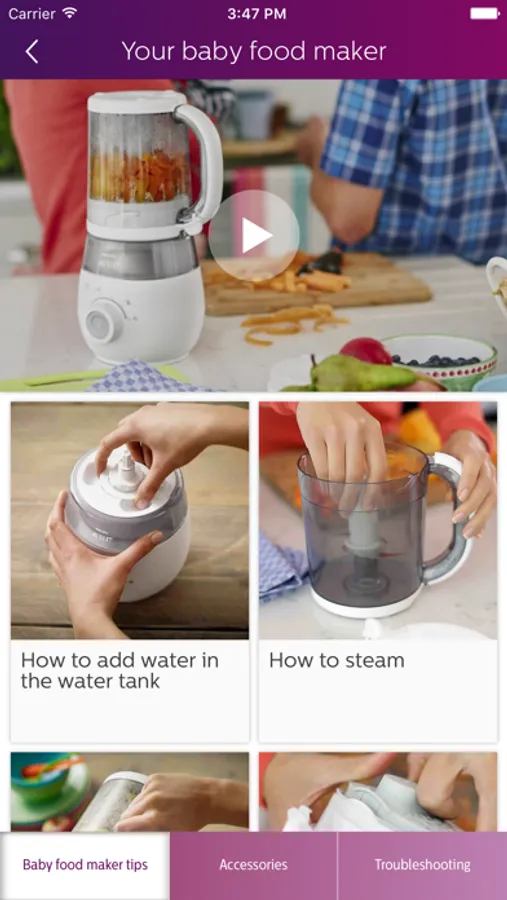 -Watch fun and informative videos and find many useful tips and tricks to get the most out of Philips Avent baby food makers